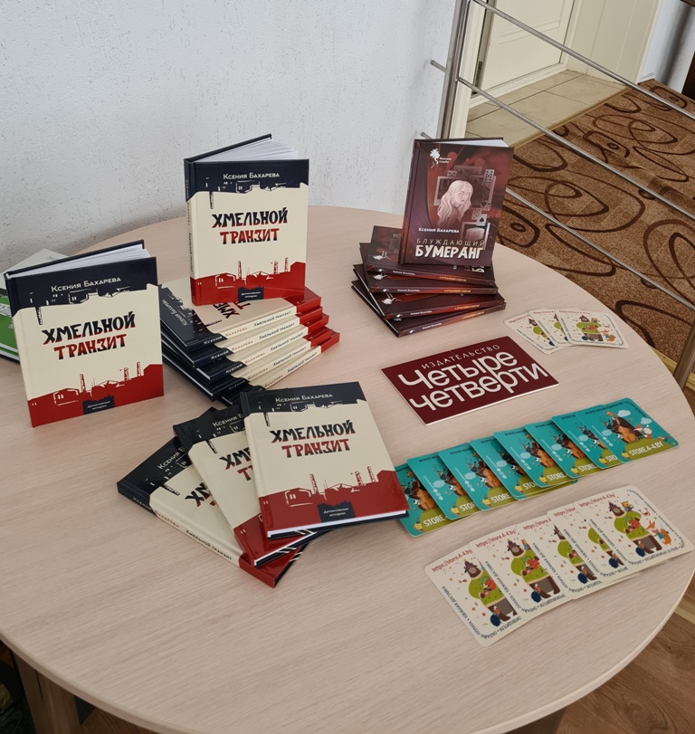 Ксения Бахарева много лет создает документальные фильмы и сценарии телепередач, а четыре года назад на издательскую электронную почту прислала заявку от автора. После ознакомления с рукописью представленную повесть, написанную простым языком про непростые события, включили в план с уверенностью, что книга заинтересует читателя. Обратило на себя внимание то, как талантливо смогла Ксения Васильевна адаптировать живые случаи, документальные сюжеты в художественное произведение. Результат совместной работы с автором — три выпущенные в свет книги:«Кооп стоп» (2019), «Блуждающий бумеранг» (2022), «Хмельной транзит» (2023). К оформлению каждого издания подходили трепетно: советовались по дизайну эскизов обложки, исправлениям в тексте. Лаконично, легко, с ретроспективой в начало 1980-х, но современно звучит «Хмельной транзит». Книга повествует о естественном желании человека быть хозяином собственной жизни, обрести уверенность в завтрашнем дне. Но оправдывает ли это совершенные преступления? — задает она вопрос читателю.