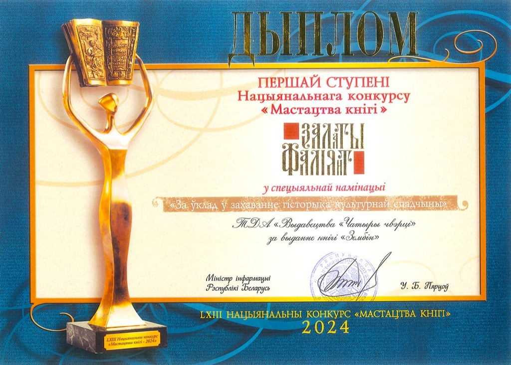Книга «Зембін: кароткі экскурс у гісторыю і сучаснасць. Жыццяпіс зембінцаў» Лилианы Анцух, выпущенная в серии «Малая радзіма. Барысаўскі раён», удостоена диплома первой степени и памятного знака-символа «Залаты фаліянт» Национального конкурса «Искусство книги»-2024 в номинации «За ўклад у захаванне гісторыка-культурнай спадчыны».